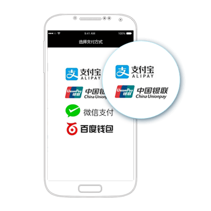 高老庄支付平台,为iOS/Android原生/H5 App提供支付解决方案:支持微信支付、支付宝支付、银联手机支付、百度钱包等。